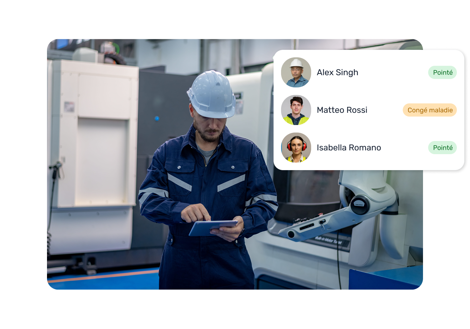 Simplifiez la gestion des effectifs, réduisez les erreurs et respectez les délais de production, le tout à partir d’une plateforme intelligente.